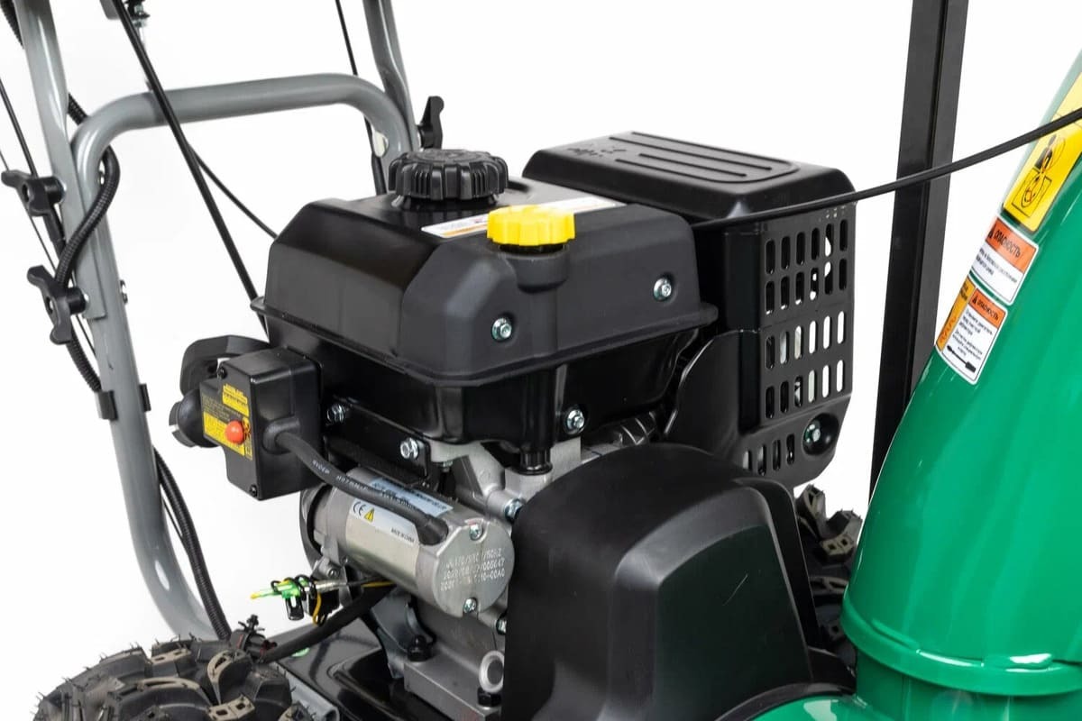 Снегоуборочная машина имеет двигатель мощностью 7 л.с. и объемом 212 куб. см с воздушным охлаждением. Преимущества: