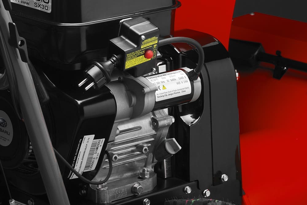 - На снегоуборщике установлен двигатель Subaru SX21 Snow Power. Мощность мотора составляет 7 л.с. с объемом 211 кубов. Этого достаточно для того, чтобы справиться со сугробами глубиной 60 см. Двигатель оснащен цепным привод газораспределительного механизма и другими необходимыми деталями, которые позволяют снегоуборочной машине справляться со своей работой качественнее и быстрее.