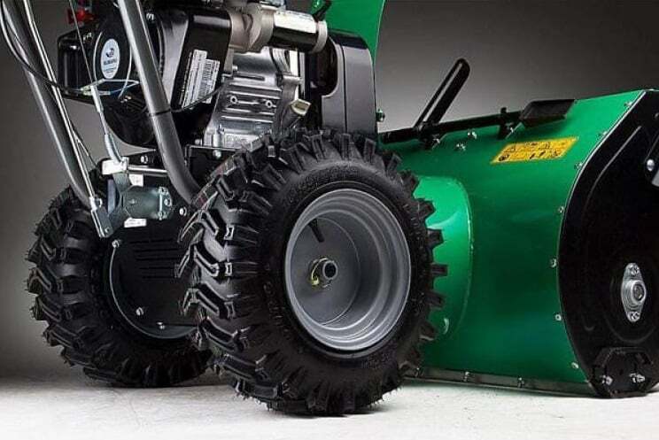 - На снегоуборщике установлен 4 тактный двигатель Subaru SX30. Мощность мотора составляет 9,5 л.с. с объемом 287 кубов. Двигатель оснащен цепным приводом газораспределительного механизма и другими необходимыми деталями, которые позволяют снегоуборочной машине справляться со своей работой качественнее и быстрее.