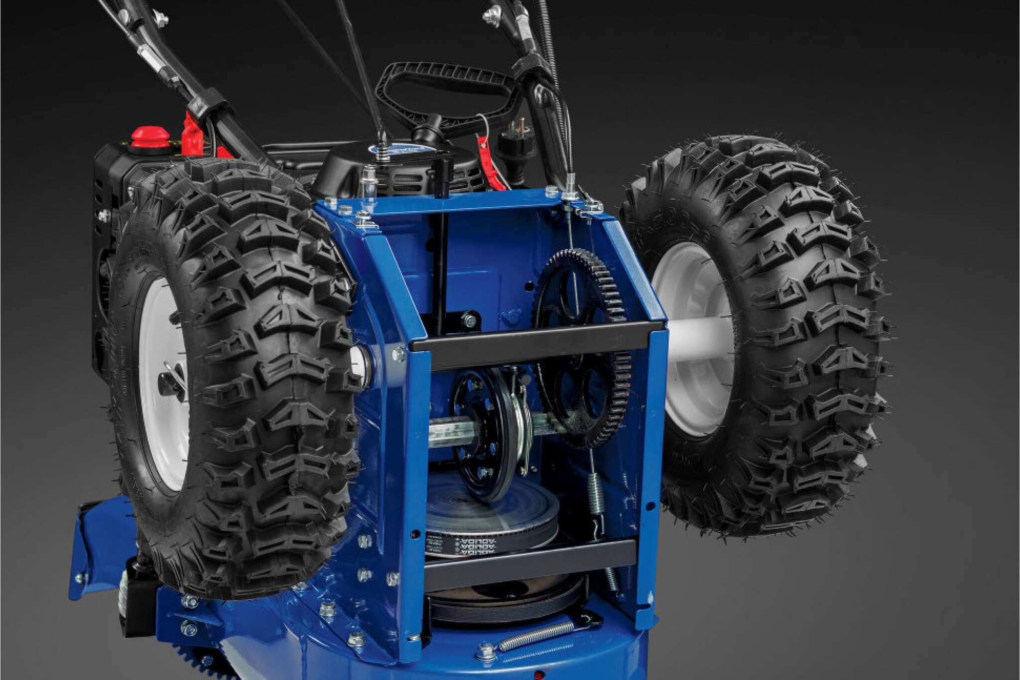 Данная модель самоходного снегоочистителя оснащена пневмоколесами. Они позволяют машине производить минимальную пробуксовку и оснащают ее хорошим сцеплением с любой поверхностью - наклон или даже ледяная корочка.