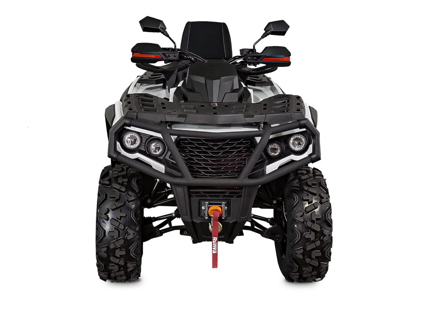 Электроусилитель руля (EPS), зеркала заднего вида, лебедка с тяговым усилием 1500 кг, усиленный передний и задний бампер, расширители колесных арок и двухместное сиденье. Кроме того, вас порадует современная светодиодная оптика и максимально удобные органы управления от стояночного тормоза до розетки в 12В и USB разъема.
