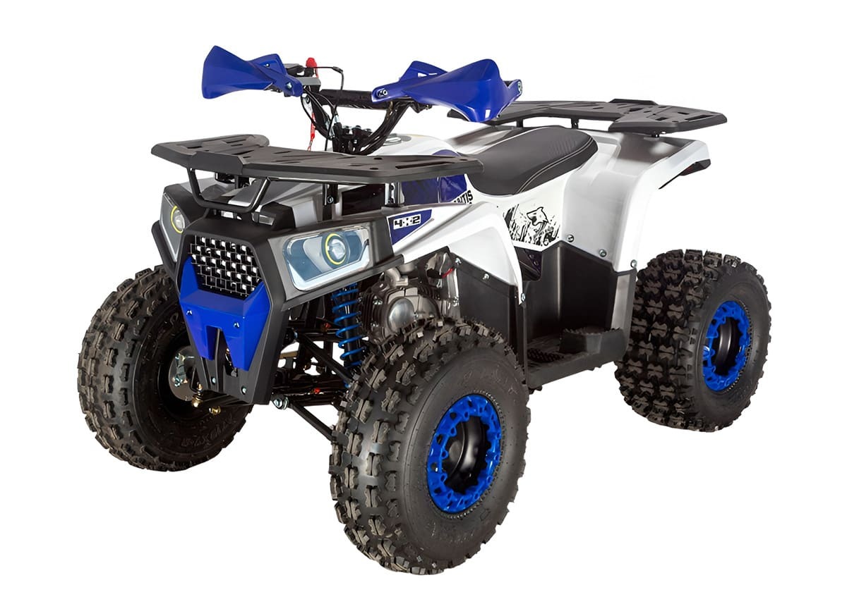 Модель рассчитана на детей 5–15 лет, что позволяет использовать один квадроцикл на весь период взросления. Четырёхтактный одноцилиндровый двигатель объёмом 125 см³ с балансирным валом обеспечивает плавную работу и разгон до 60 км/ч. Для безопасности предусмотрен встроенный ограничитель скорости, который позволяет снизить её до комфортного уровня. Квадроцикл выдерживает нагрузку до 100 кг, поэтому ребёнок может кататься как один, так и вместе с другом.