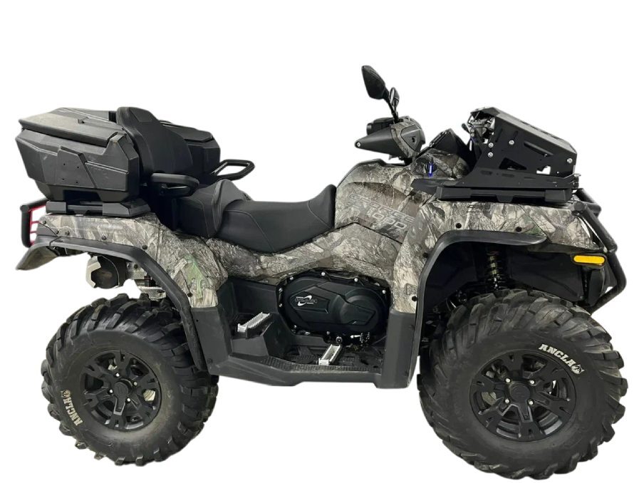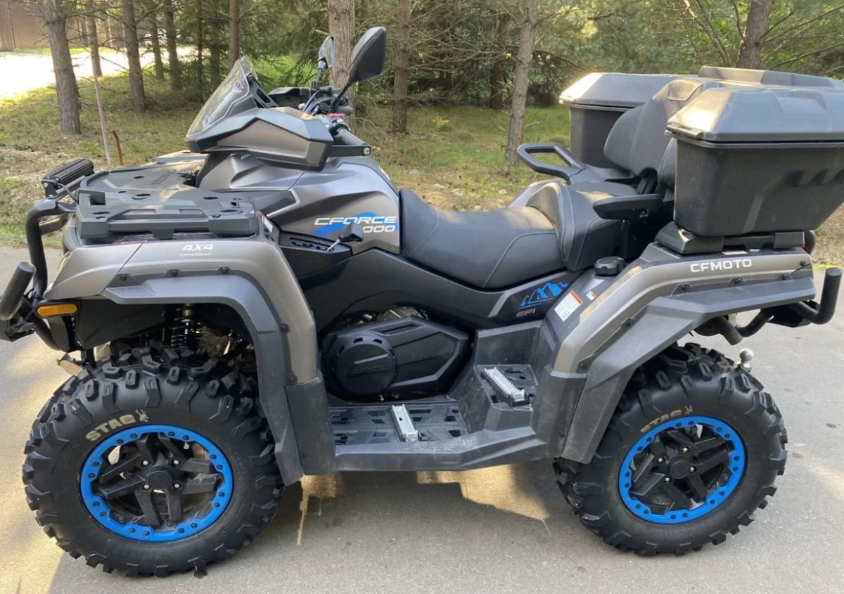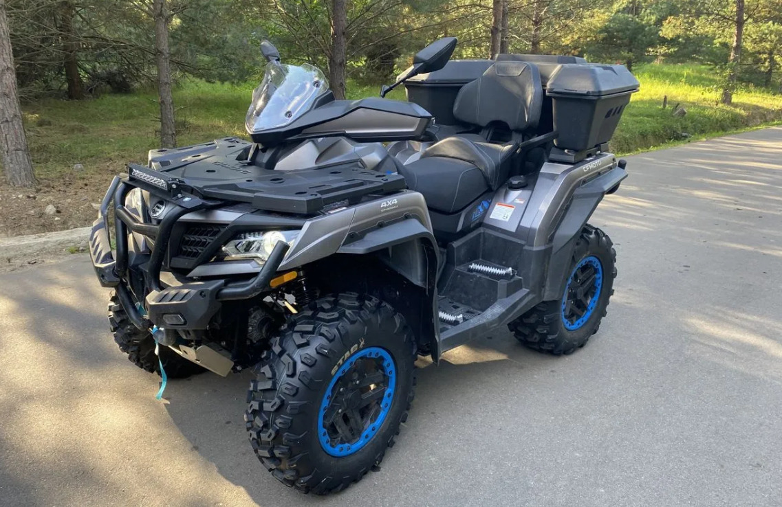 Конечно усилитель рулевого управления (EPS) остался не тронутым, а вот стандартная комплектация это просто нечто! Эксклюзивная солидная расцветка кузова - серый матвый графит, великоленыеые легкосплавные 14 дюймовые диски с бедлоками, два, мы не ошиблись, ДВА задних кофра, один из которых можно поставить вместо заднего сиденья, передний и задний силовые бамперы особой серии, ветровое стекло в сочетании с совершенной дизайнерской защитой рук, 8-ми милиметровая пластиковая защита днища с алюминиевой защитой лебедки и расширители арок особопривлекательного рубленого дизайна, все это сделало CFORCE 1000 OVERLAND неповторимым и совершенно особенным на российском рынке квадроциклов.