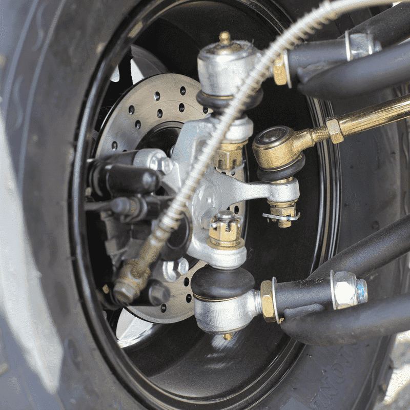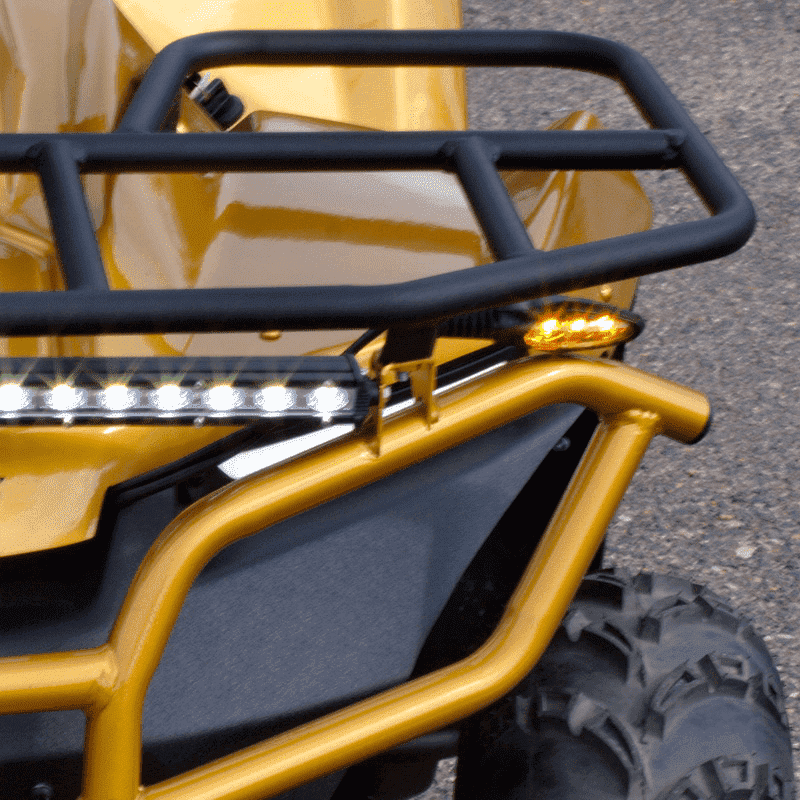 Независимая передняя подвеска позволяет легко маневрировать и держать уверенно курс. В наличие задний ход. На квадроцикле установлены большие внедорожные шины размером 23 дюйма передние и 22 дюйма задние. На задней оси установлены дополнительные защитные кожухи. Рама квадроцикла изготовлена из высокопрочной стали, при этом удалось сделать квадроцикл достаточно легким, его сухой вес составляет 170 кг.