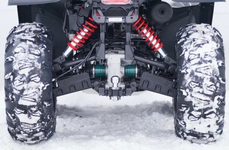 Начало работы мотора от системы электронного пуска, питание происходит по инжекторному типу. Силовая установка имеет рабочий объем 400 куб. см, а мощность в 28 л.с. с легкостью разгоняет внедорожник до 80 км/ч. Квадроцикл имеет массу 330 кг. и одноцилиндровый четырехтактный двигатель с жидкостным и принудительно воздушным охлаждением.