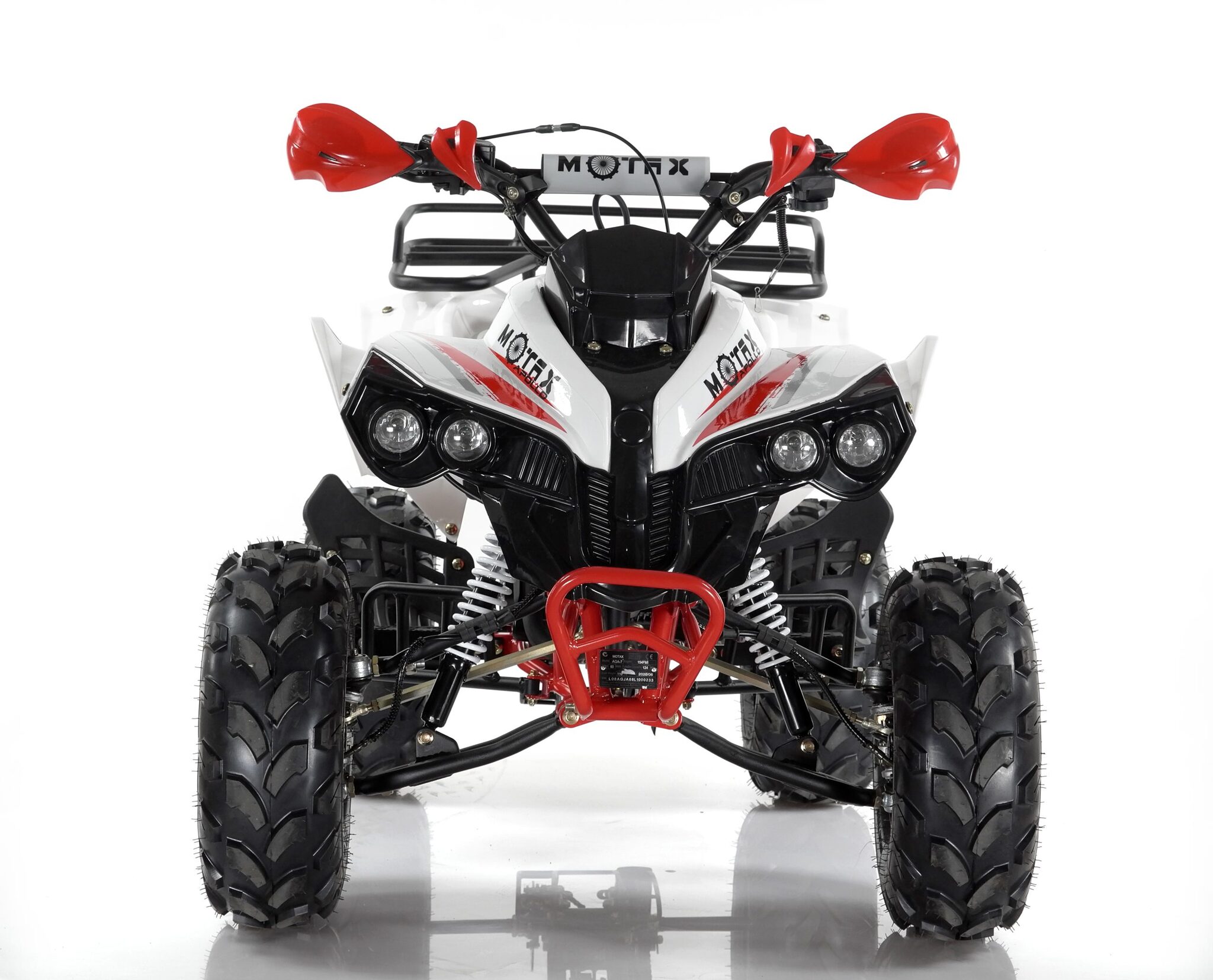 Motax ATV Raptor super lux 125 сс - стильный и современный мотовездеход для подростков в возрасте от 7 до 16 лет. Аппарат имеет спортивный характер, отличную комплектацию и внедорожные способности. Благодаря мощному четырёхтактному двигателю, рабочим объёмом 125 см3, и мощностью 10 л.с., квадроцикл легко разгоняется до максимальной скорости в 65 км/ч.