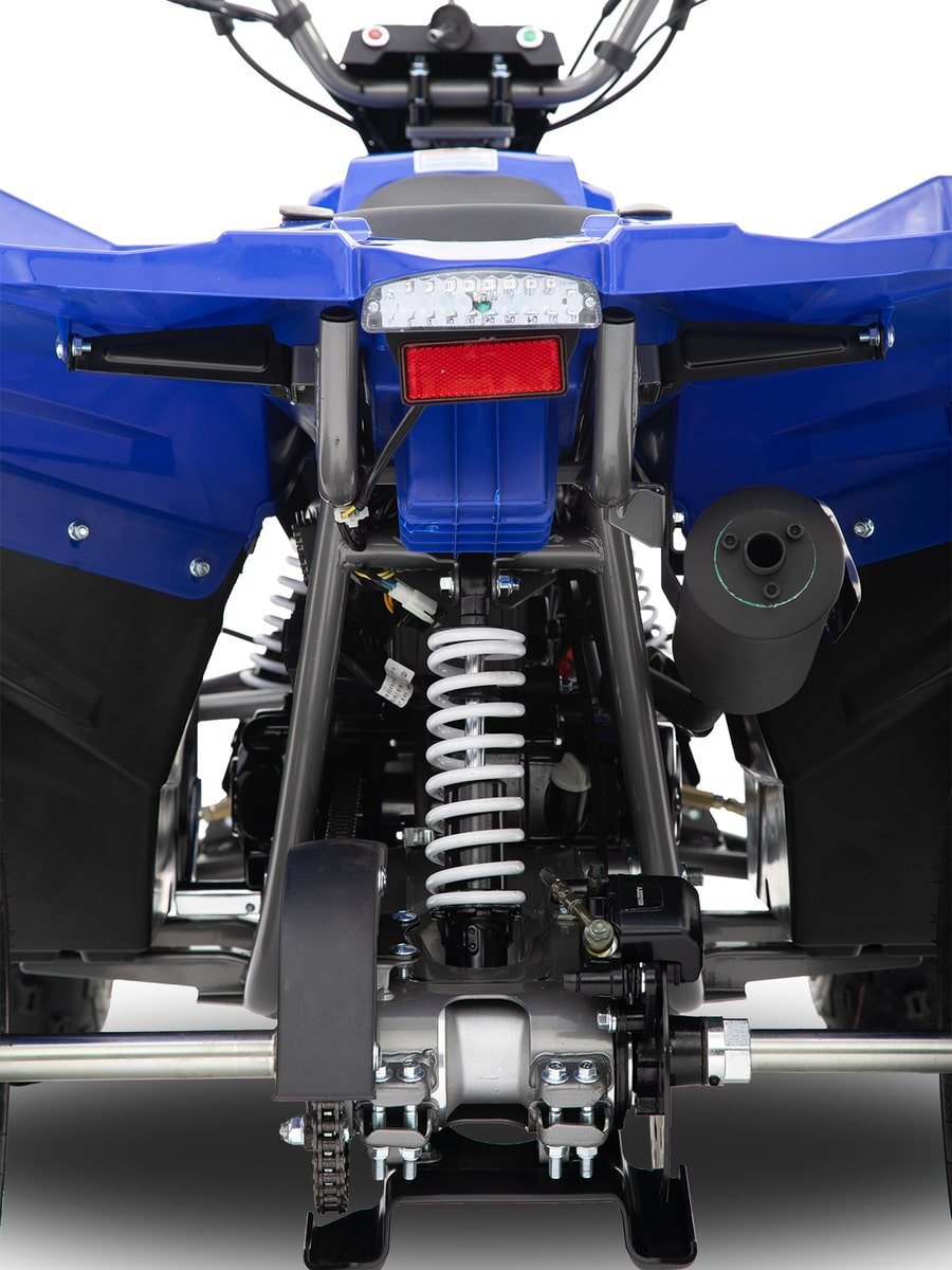 Привод на заднюю ось осуществляется при помощи усиленной цепи, что позволяет быстро и без больших потерь передавать всю мощность двигателя на колёса. Передние двухпоршневые суппорты обеспечивают серьёзную безопасность райдера и большую уверенность в торможении.