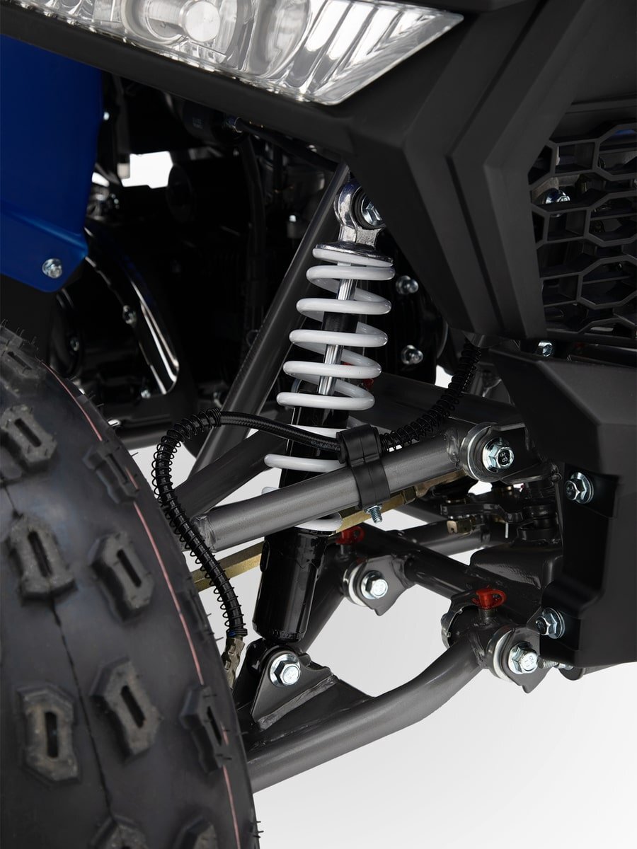 SHARMAX 200 Cross отлично зарекомендовал себя и в быстрой езде по бездорожью, и в маневрировании на твёрдом покрытии. Высокие показатели управляемости и комфортной езды достигаются за счёт передней двухрычажной подвески. Маслёнки, расположенные на передней подвеске квадроцикла, значительно увеличивают срок службы и упрощают ее обслуживание.