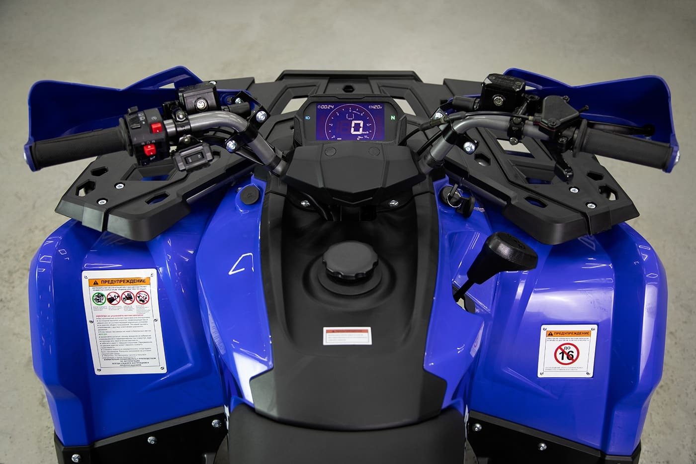 Длинная и широкая колесная база обеспечивает повышенную устойчивость и сцепление с дорогой, что позволяет уверенно преодолевать сложные участки бездорожья. Она увеличивает грузоподъёмность квадроцикла, делая его идеальным для перевозки снаряжения или охотничьих трофеев.
