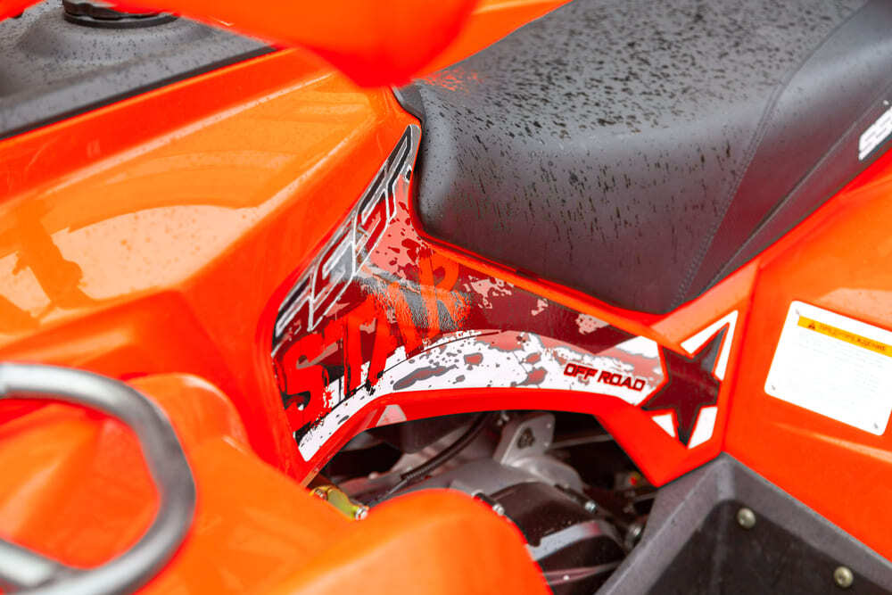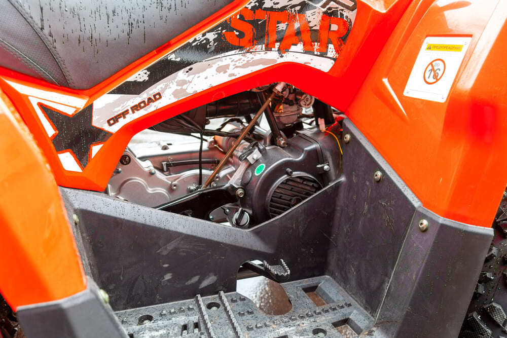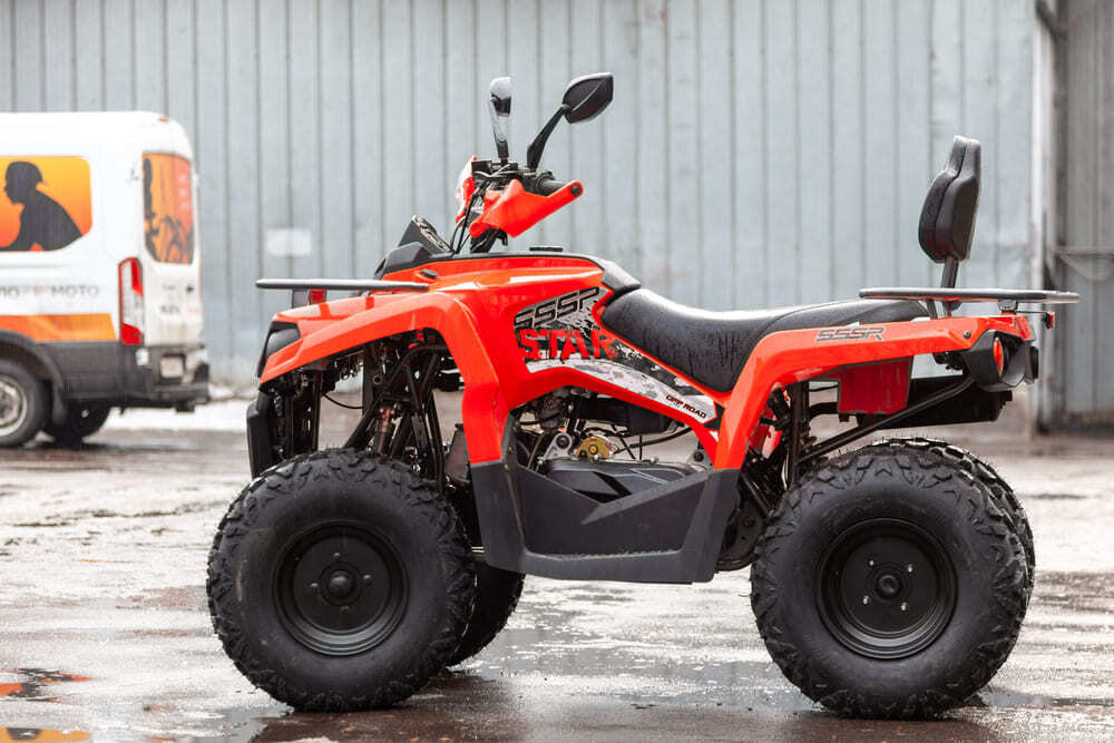 SSSR Star 200 – заднеприводный квадроцикл в спортивном стиле, с ярким дизайном и отличными показателями! Лучший выбор для детей и взрослых для передвижения по любым дорогам и вне их. Star оснащен надежным 4-х тактным мотором Juneng объёмом 200сс, мощностью 12 лс, с воздушным охлаждением. Трансмиссия - вариатор CVT плюс задняя передача. Квадроцикл построен на мощной пространственной стальной раме, покрашенной в черный цвет Передняя подвеска – независимая, с большими ходами, на двойных А - рычагах. Эффективные дисковые тормоза по кругу.