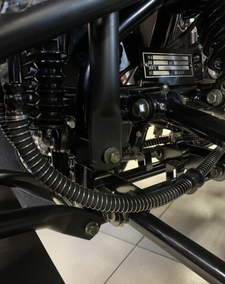 Квадроцикл оснащен системой дистанционного управления, дисковыми тормозами, зеркалами заднего вида и световым оборудованием. В стандартной комплектации квадроцикла установлены расширители колесных арок, защита днища, металлический бампер с декоративной накладкой. А также в комплекте с квадроциклов удлиненное сиденье и большие широкие подножки, позволяющие водителю удобно разместиться на транспорте.