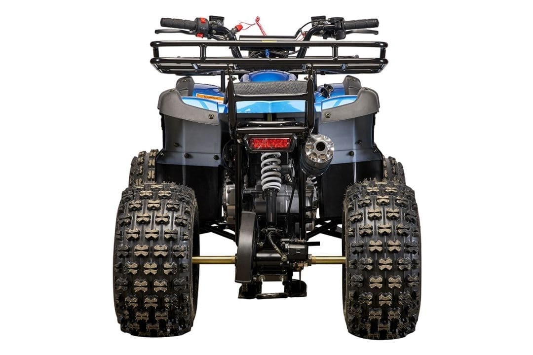 Детский квадроцикл Yacota Kids 8" подходит для детей старше 5 лет. На мототранспорте можно ездить по обычным дорогам, грунтовке и бездорожью. Квадроцикл Yacota Kids 8 будет удобен для пользователей с максимальным ростом до 140 см. На мотовездеходе установлен бензиновый одноцилиндровый четырехтактный двигатель объемом 125 кубов. Мотор обладает мощностью 9 л.с. Воздушная охлаждающая система поддерживает оптимальную температуру двигателя. Детский квадроцикл Якота оснащен система электронного зажигания. Карбюратор подает топливо в мотор. На мототранспорте можно ездить с максимальной скоростью до 50 км/ч.