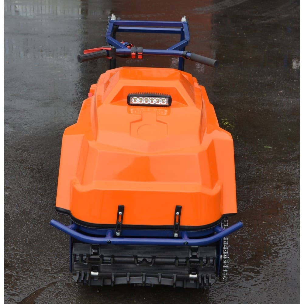 Для удобства управления, компактный блок управления вынесен на руль. Буксировщик оснащен усиленным фаркопом с подпружиненной собачкой. Для безопасной работы, буксировщик имеет чеку аварийного отключения двигателя.