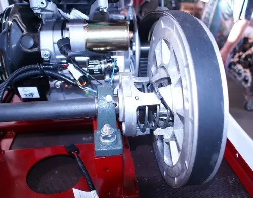 Рама у буксировщика открытая, что влияет на выброс снега. Двигатель и трансмиссия интегрированы на одной подмоторной плите, что позволяет точно выставлять шкивы относительно друг друга, вследствие чего устраняется перекос ремня вариатора. Прочная стальная рама, каркас безопасности и металлический капот надежно защищают силовую установку мотобуксировщика.