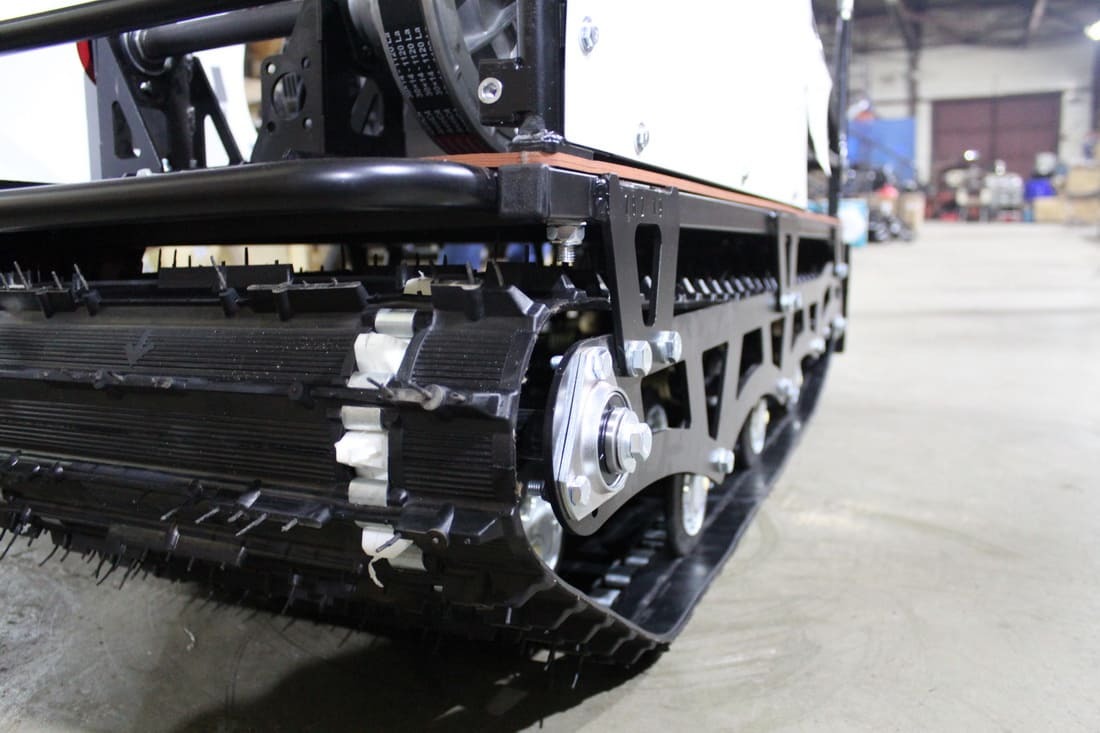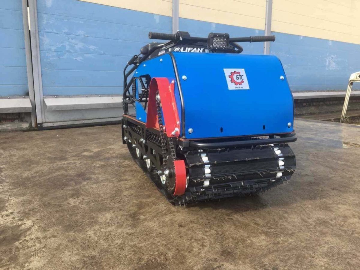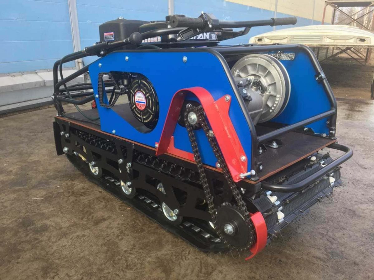 Модель оснащена гусеницей шириной 500 мм. Гусеница в сочетании с катковой подвеской способна проходить спокойно по льду и даже по территории без снега.