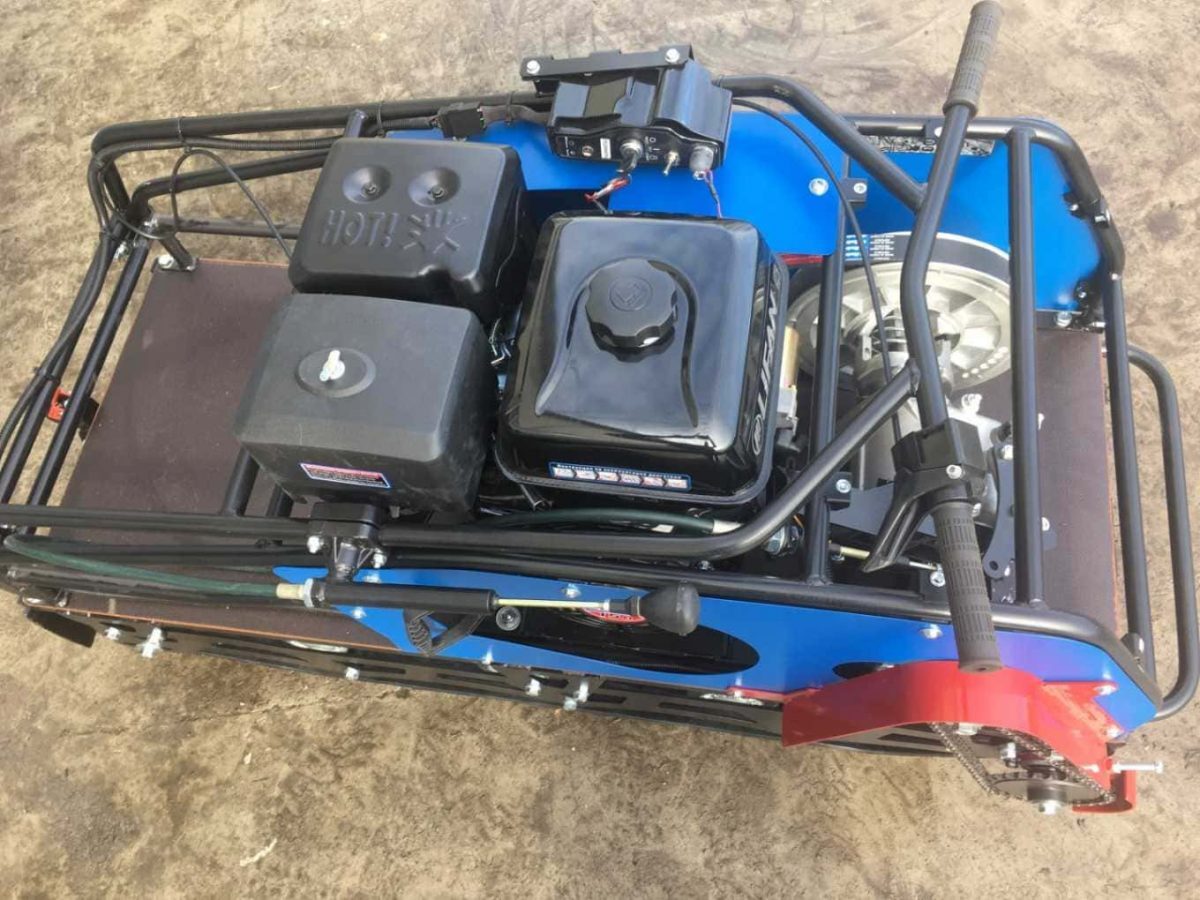 Рама максимально открытая, что улучшает выброс снега. Установлена защита нижней звезды. Двигатель и трансмиссия интегрированы на одной подмоторной плите, что позволяет точно выставлять шкивы относительно друг друга, вследствие чего устраняется перекос ремня вариатора и увеличивается его срок службы. Прочная стальная рама, каркас безопасности и металлический капот надежно защищают силовую установку мотобуксировщика.