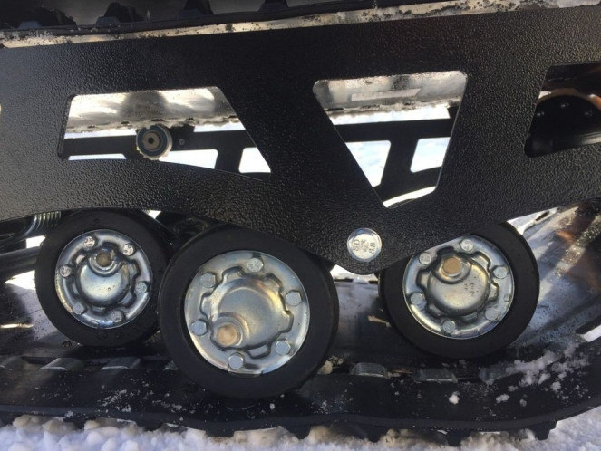 Модель оснащена гусеницей шириной 500 мм. Гусеница в сочетании с катковой подвеской способна проходить спокойно по льду и даже по территории без снега.