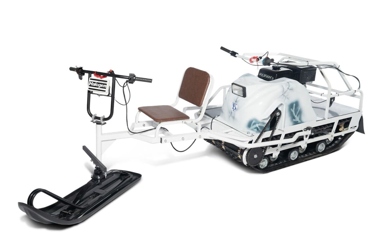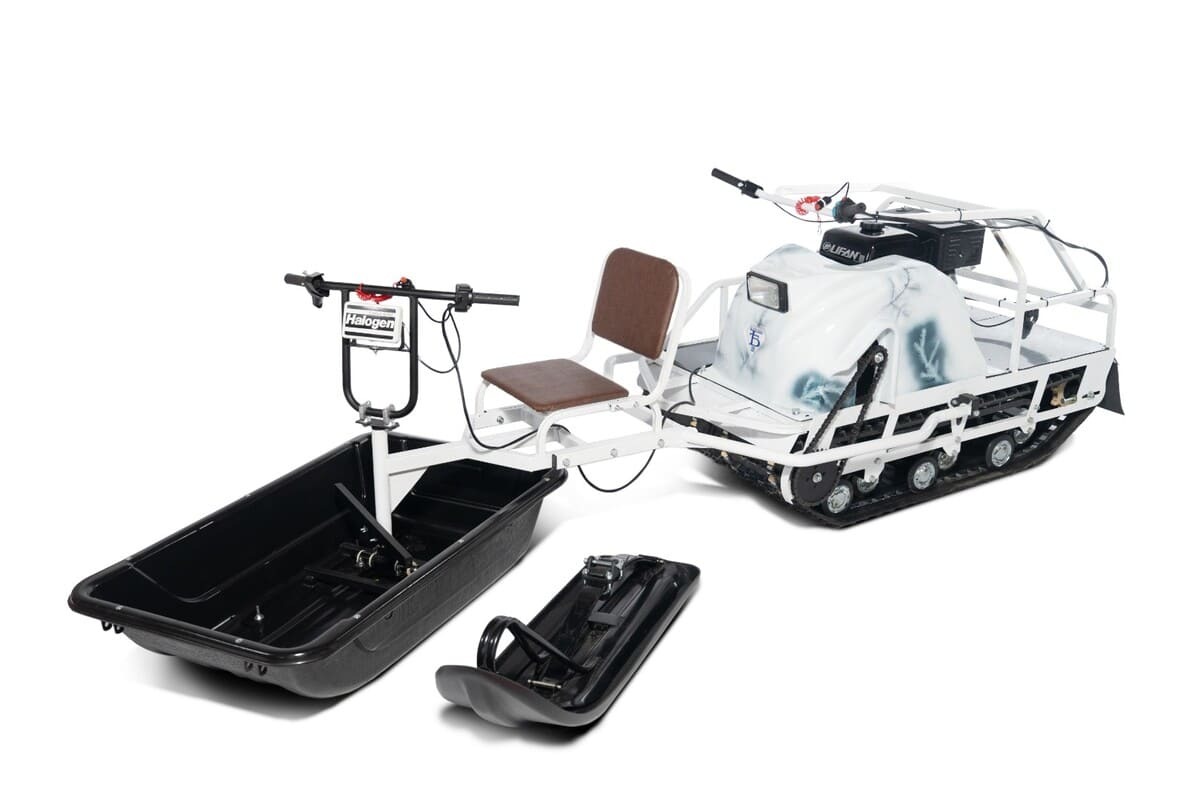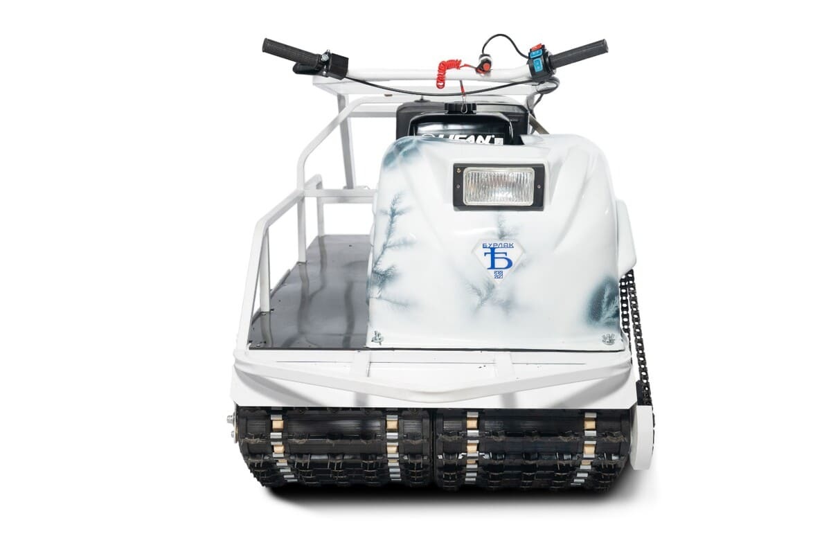 Опционально можно установить коробку реверса с полноценной нейтральной передачей и тормозной механизм. Базовая модель комплектуется универсальным модулем-толкачом, в котором волокуши легко заменяются на лыжу с расширительной накладкой. Производитель оставляет за собой право вносить изменения в конструкцию мотобуксировщика Бурлак-М.