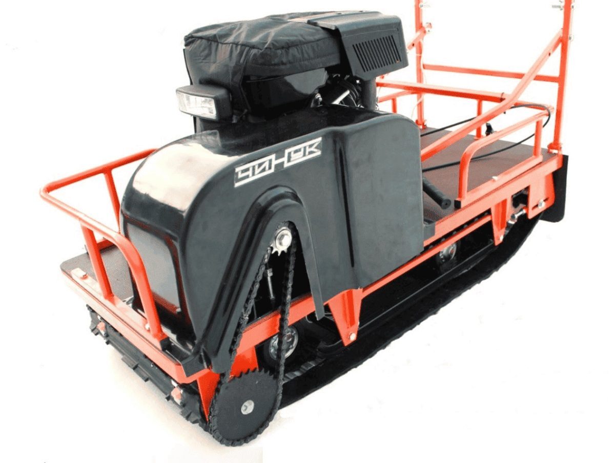 Рулевая колонка настраиваемая – рукоятку можно «подогнать» по вертикали в зависимости от роста и телосложения водителя. Чуником необходимо управлять, находясь на санях-волокушах (туда можно закрепить специальное кресло или оставаться в стоячем положении).