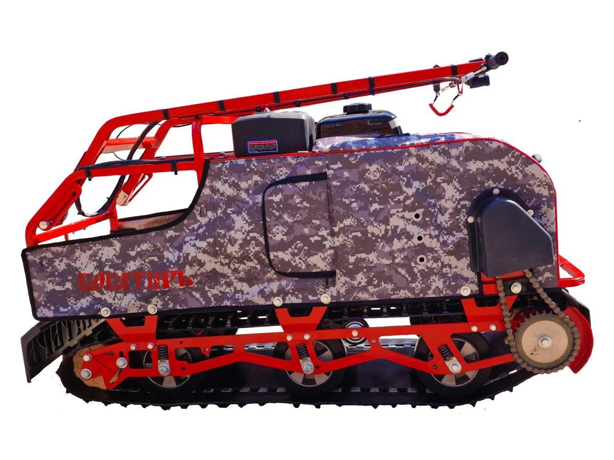 Никакого снега в гусенице, никакого обмерзания, легкий вес и превосходная плавность хода.Покупая мотобуксировщик БОГАТЫРЬ Вы можете быть уверены в непревзойденном качестве, легкости управления и высоком уровне комфорта при езде - благодаря удобной компоновке, удобному рулю, и легкому весу.