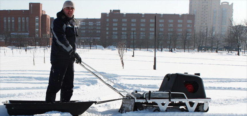 Мотобуксировщик для перевозки грузов и людей по поверхностям, недоступным иным видам транспорта. Круглогодичное использование на поверхностях, покрытых грунтом, льдом, снегом, грязевыми массами, песком. Хорошо подходит для использования на льду или рыхлом снегу. Автоматическое сцепление, переднее расположение двигателя, обтекатель двигателя, складывающийся руль.