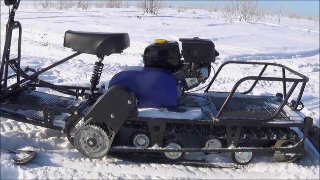 Из импортных комплектующих применяется двигатель - проверенные за много лет и наиболее распространенные в России двигатели LIFAN. Для двигателей LIFAN легко найти запчасти на рынке. Есть модификации с двигателем ZONGSHEN GB270, который не уступает по качеству LIFAN, но имеет максимальную в этом классе мощность - 9 лс. В основном же применяются российские комплектующие - детали трансмиссии - г. Рыбинск, гусеница - г. Курск, рама и прочие корпусные детали, коробка реверса, лыжи - Ижтехмаш, г. Ижевск. В трансмиссии используются более дорогие приводные цепи - производства Даугавпилс. В целом, в конструкции использованы широко доступные на рынке комплектующие, поэтому найти при необходимости нужную запчасть не составит особого труда.