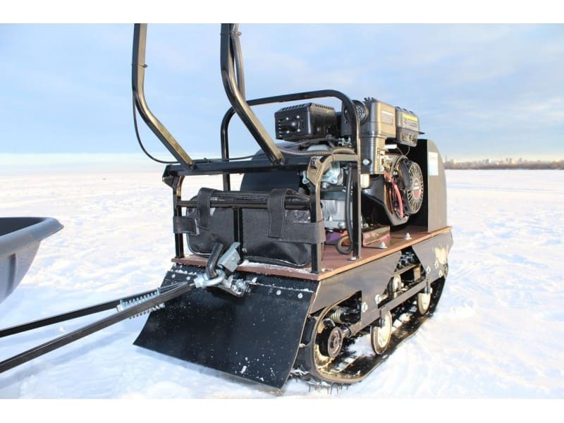 Катковая подвеска упрощена и не дает гусенице забиваться снегом. Также на данном мотобуксировщике установлены обрезиненные катки с сальниками и ведомая звезда, которая самоочищается от снега и льда.