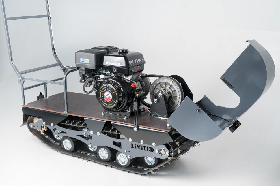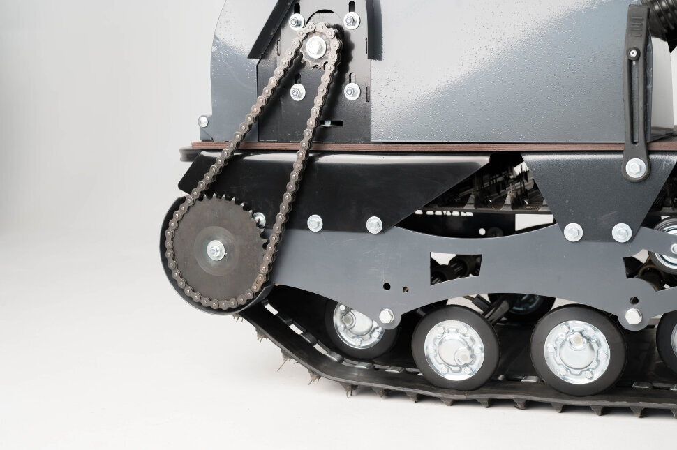 Катковая подвеска упрощена и не дает гусенице забиваться снегом. Также на данном мотобуксировщике установлены обрезиненные катки с сальниками и ведомая звезда, которая самоочищается от снега и льда. На мотобуксировщике также установлена настраиваемая рукоятка, регулируемая по высоте в зависимости от роста водителя.