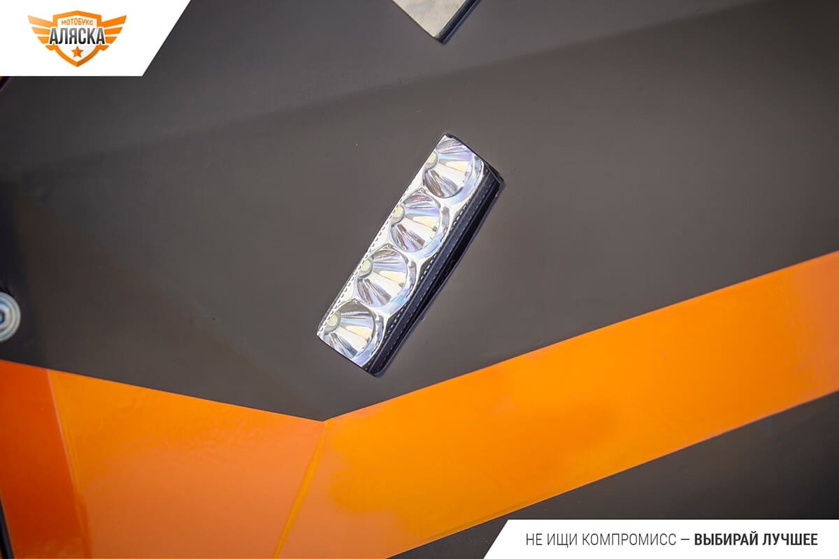 Мотособака имеет усиленную рамную конструкцию из гнутого профиля и стальной окрашенный кузов, нанесенный на заводе. Производитель также предусмотрел защиту приводной цепи и деталей подвески, дисковый тормоз с функцией парковки, магнето-генератор для электрооборудования и зарядки мобильных устройств. Благодаря хорошей тяге, мягкой подвеске, а также оптимальной компоновке узлов и угла атаки гусеницы, мотобукс обеспечивает комфортное движение по бездорожью.