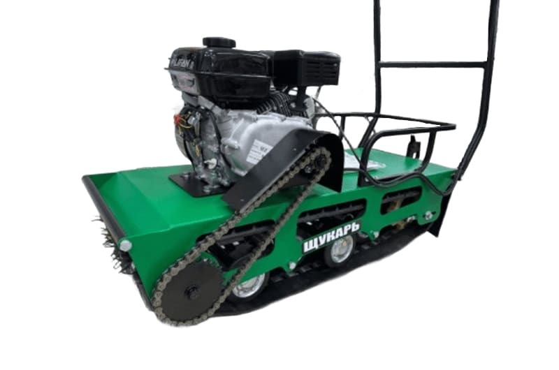 На буксировщике установлен двигатель марки Lifan (Лифан) мощностью 8 лошадиных сил, подвеска буксировщика катковая (катки и валы Буран).