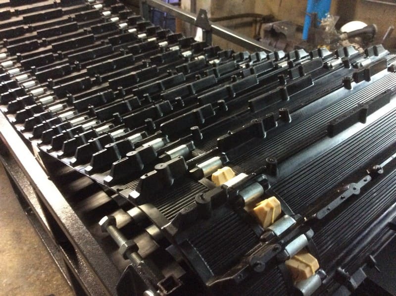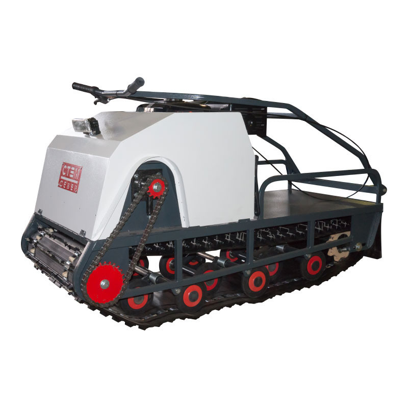 В конструкции мотовездехода используется цельная резиновая гусеница шириной 500 мм. Гусеница в сочетании с катковой подвеской способна проходить спокойно по льду и даже по территории без снега.