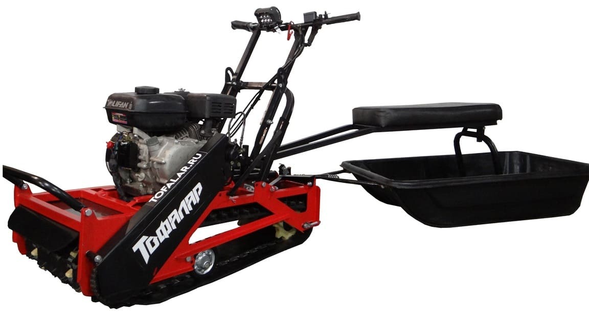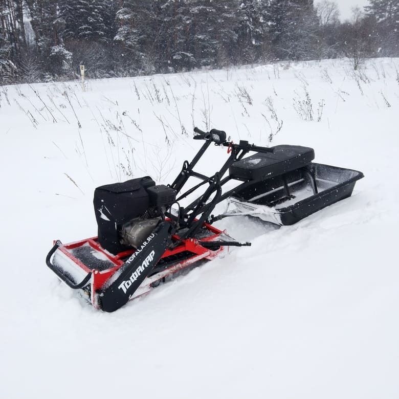В конструкции мотовездехода используется цельная резиновая гусеница шириной 380 мм. Увеличенная площадь опоры гусеницы улучшает тяговые характеристики, проходимость и устойчивость буксировщика.