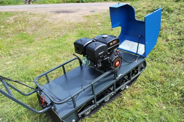 На мотобуксе установлена катковая подвеска. Катки устанавливаются на оси и предназначены для смягчения ударов и вибраций, возникающих при движении по неровной местности. Подвеска также способствует лучшей проходимости и устойчивости мотобуксировщика, обеспечивая более комфортное и безопасное передвижение как в сельской местности, так и на дорогах.