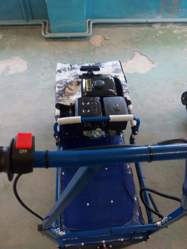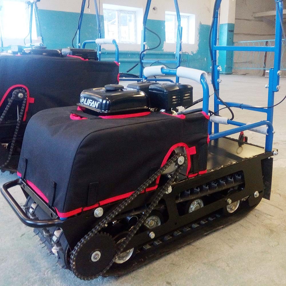 В конструкции мотовездехода используется цельная резиновая гусеница шириной 380 мм. Площадь опоры гусеницы улучшает тяговые характеристики, проходимость и устойчивость буксировщика.