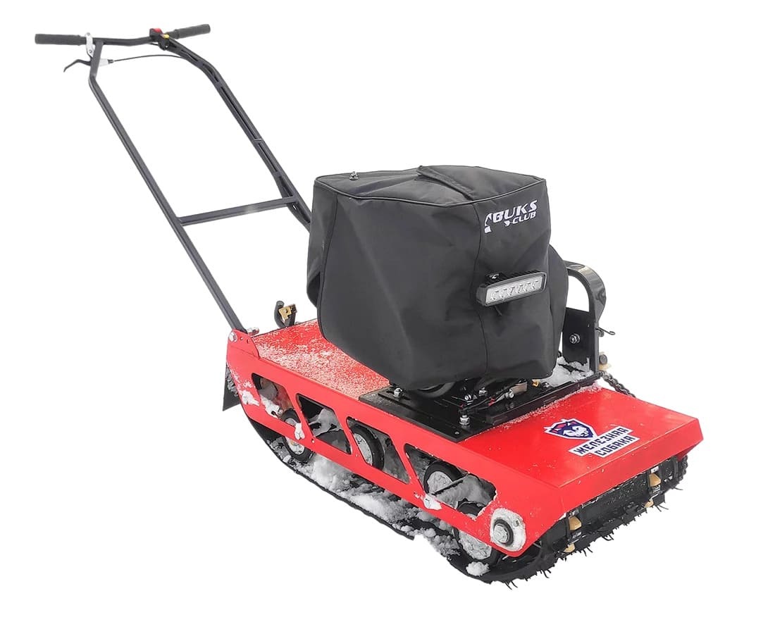 Мотособака весит 60 кг, а размер ее составляет 104 см в длину, 39 см в ширину и 65 см в высоту. Модель оснащена гусеницей шириной 380 мм. Гусеница в сочетании с катковой подвеской способна проходить спокойно по льду и даже по территории без снега.