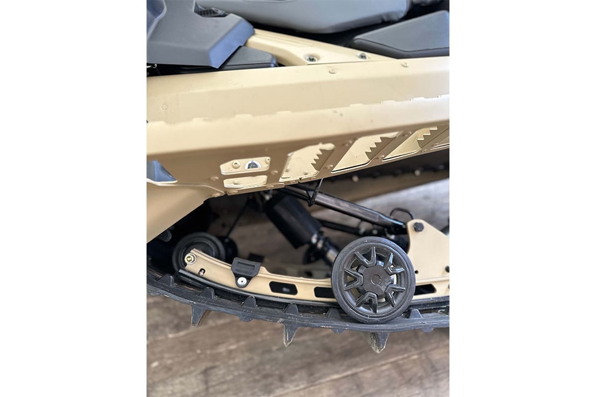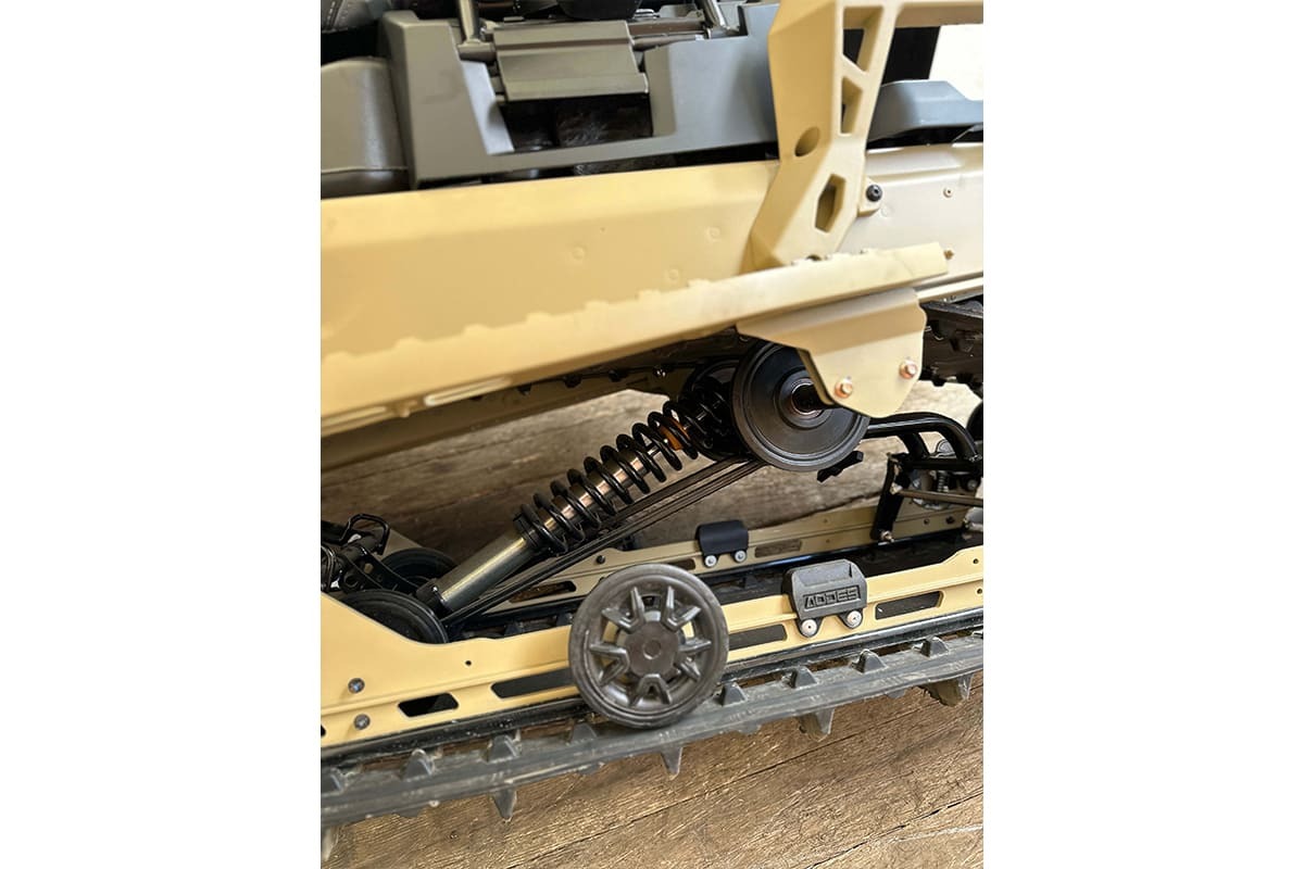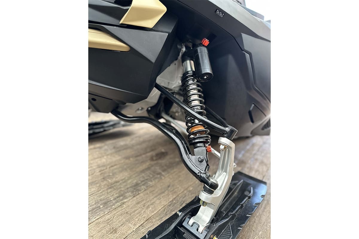 Гусеницы снегохода отличаются четким сцеплением со снегом и обеспечивают безопасность райдеру. Особенно это важно, когда речь идет о подъемах по заснеженным тропам. На снегоходе установлена: передняя подвеска — двойные A-образные рычаги.