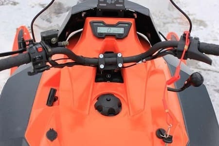 Снегоход оснащен двухпозиционным подогревом ручек руля и курка газа, розеткой для внешних приборов 12V, электронной многорежимной панелью приборов, системой аварийного глушения двигателя, системой ручного запуска двигателя, гидравлическим дисковым тормозом с функцией стояночного тормоза и большим комфортным сиденьем с подседельным кофром объемом 42 литра.