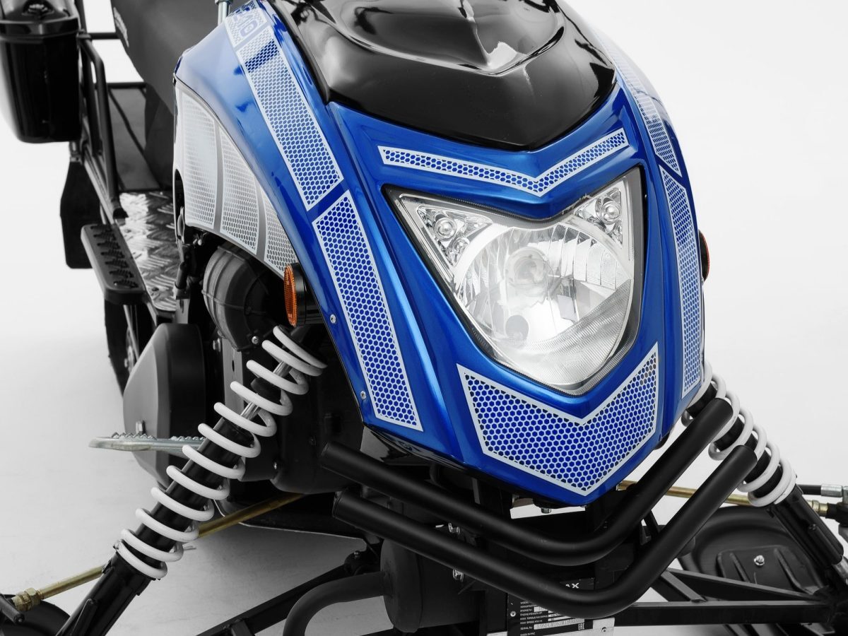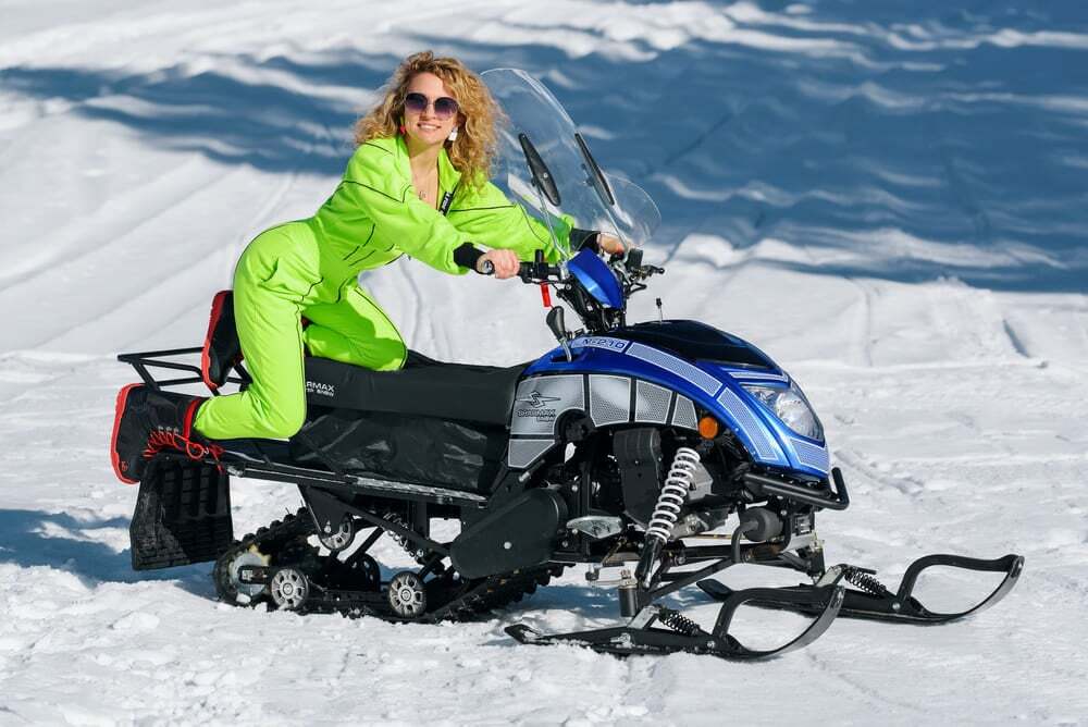 Подогрев ручек и яркая фара сделают поездку на снегоходе Sharmax SN-210 более комфортной. Компактность модели и рычажная подвеска обеспечивают лёгкость эксплуатации. С этим снегоходом справятся даже новички. Безопасность торможения обеспечивают надёжные дисковые тормоза.