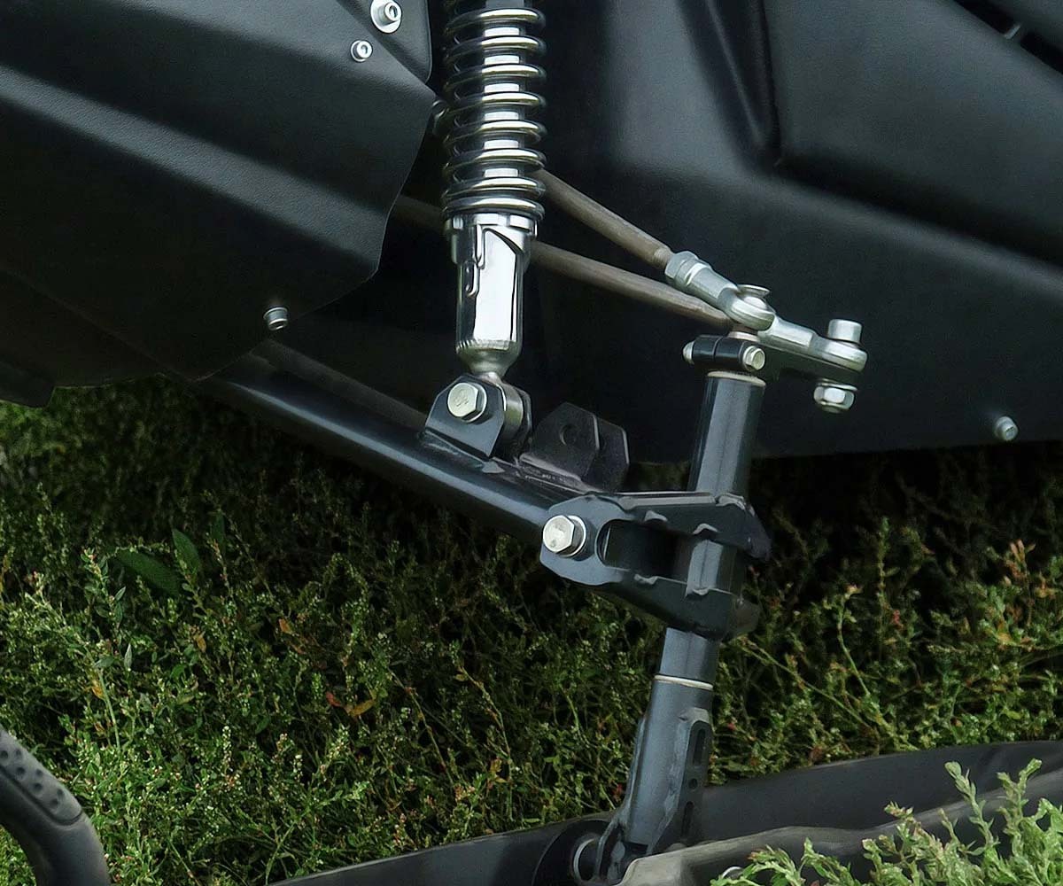 Рама снегохода изготовлена из лёгких легированных сплавов, которые отлично переносят перепады температур. Гармонично сочетает в себе жёсткость с общей прочностью.