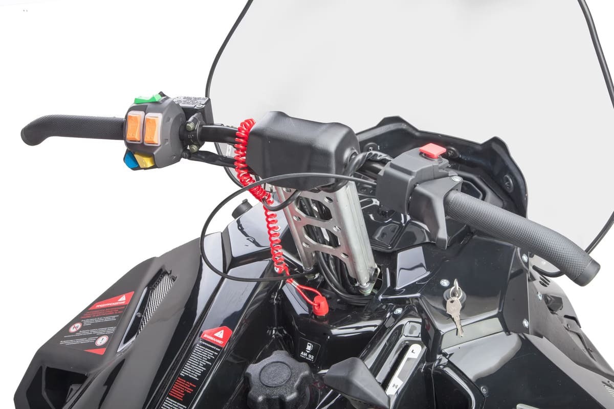 Эргономика снегохода рассчитана на активный стиль управления: руль установлен на высокой проставке, рукоятки имеют загнутые края, а новыми крупными клавишами на пультах удобно пользоваться даже в толстых перчатках. Всё вместе это обеспечивает лёгкость управления, маневренность и высокий уровень комфорта.