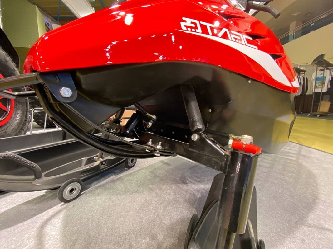 Гусеницы снегохода обладают хорошим сцеплением со снегом и обеспечивают безопасность райдеру. Особенно это важно, когда речь идет о подъемах по заснеженным тропам. На снегоходе установлены подвески: