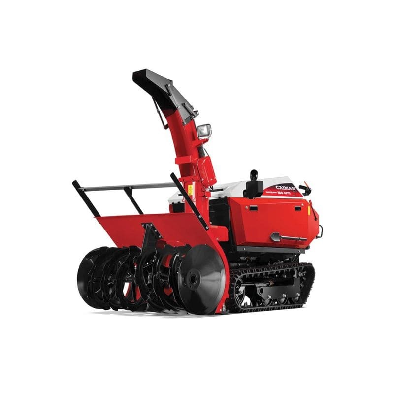 - Регулировка наклона шнека по вертикали. Снегоуборочные машины Caiman EDO 43YD(18) оснащены системой регулировки положения высоты шнека: верхнее положение – для уборки высоких сугробов и снежных завалов, среднее – для уборки снега в стандартном режиме, нижнее – для эффективной уборки глубокого снега и жесткого наста. Система быстро и легко определяет высоту забора снега, учитывая погодные условия и рельеф поверхности.