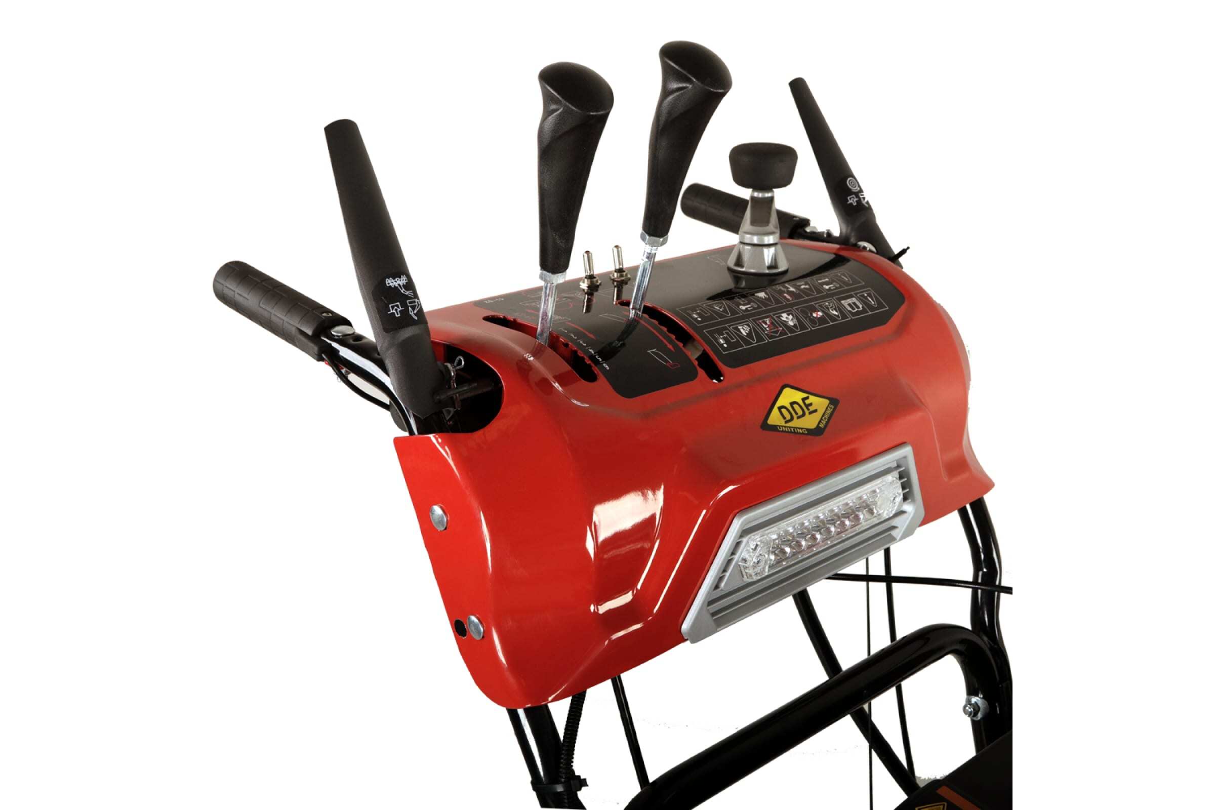 - Электростартер. Напряжение 220В оснащает снегоуборщик быстрым запуском в любую погоду.