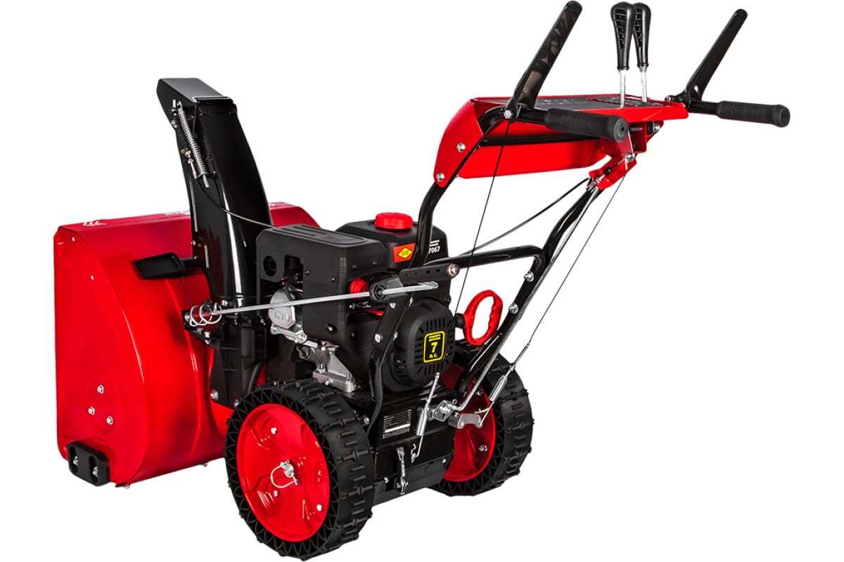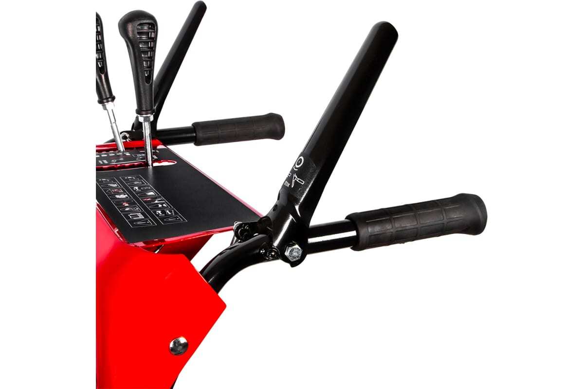 - удобная рукоятка: расположена за желобом, что облегчает подъем и перемещение снегоуборщика;