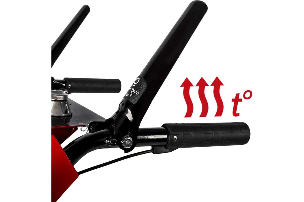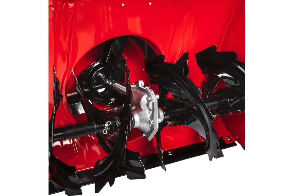 - удобная рукоятка: расположена за желобом, что облегчает подъем и перемещение снегоуборщика;