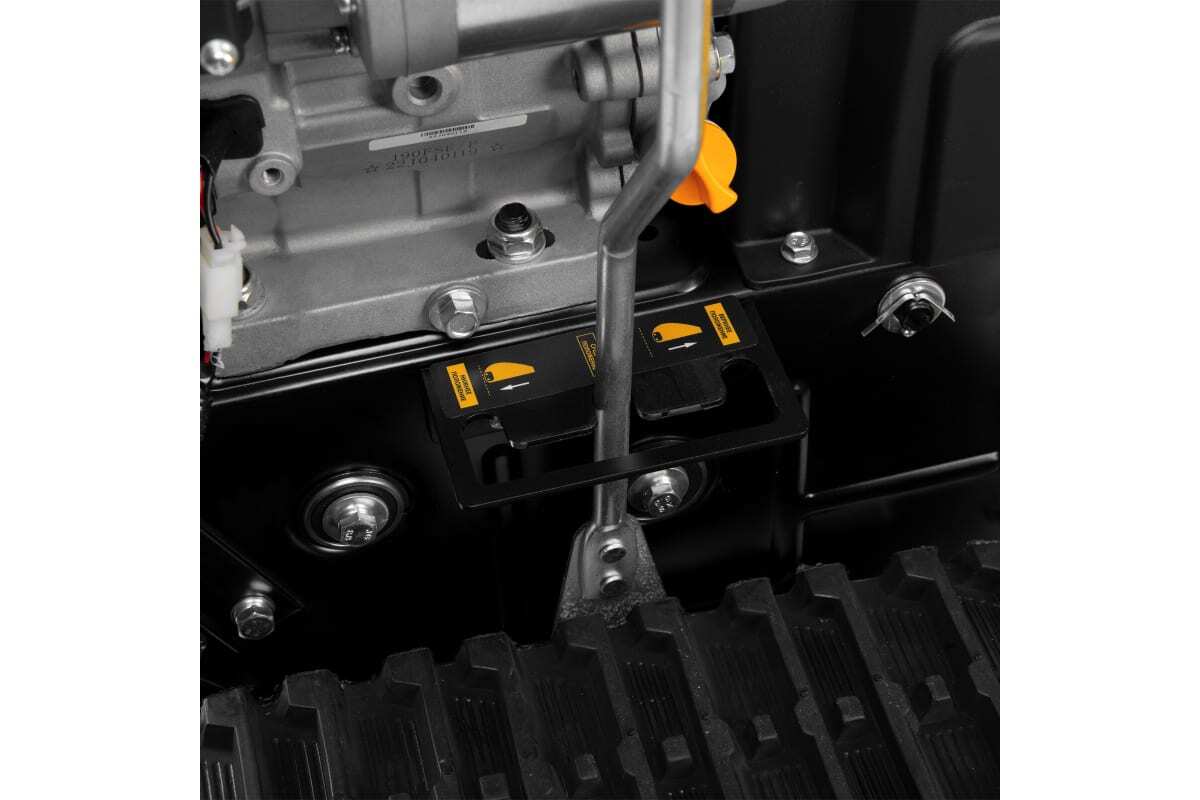 Снегоуборочная машина оборудована бензиновым двигателем Briggs & Stratton мощностью 13 л.с. с системой воздушного охлаждения. Двигатель зимней серии имеет объем 420 куб. см и повышенный крутящий момент. Кожух шнека шириной 760 мм и высотой захвата 540 мм обеспечивает эффективную и быструю уборку больших сугробов, включая слежавшийся снег с ледяной коркой.