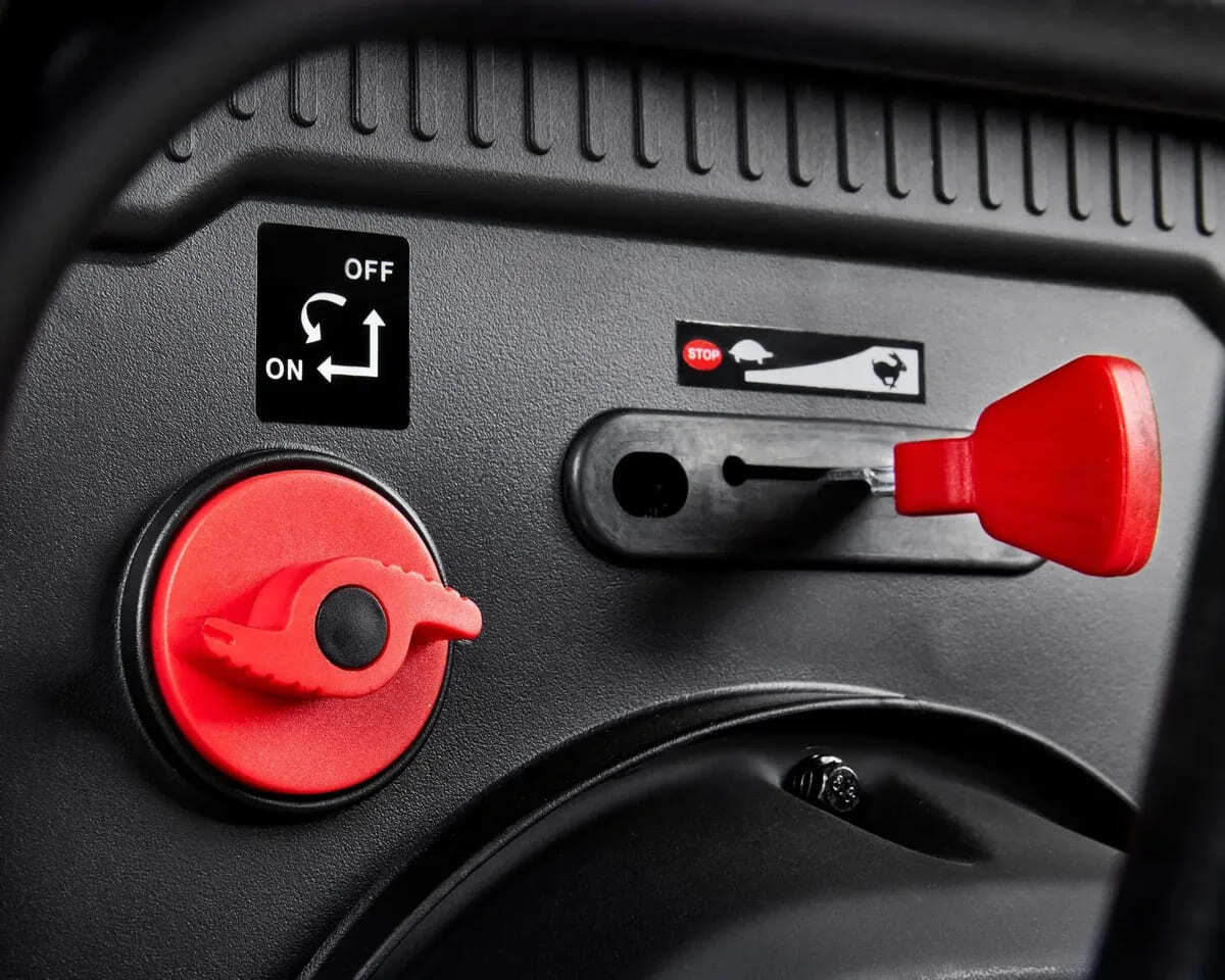 Эргономичные ручки снегоуборщика покрыты специальным морозостойким материалом, что обеспечивает дополнительный комфорт и надежный захват во время работы в морозные дни. Снегоуборщик оснащен широкими колесами с глубоким протектором, обеспечивающими превосходную тягу и маневренность на любом типе снежного покрытия.