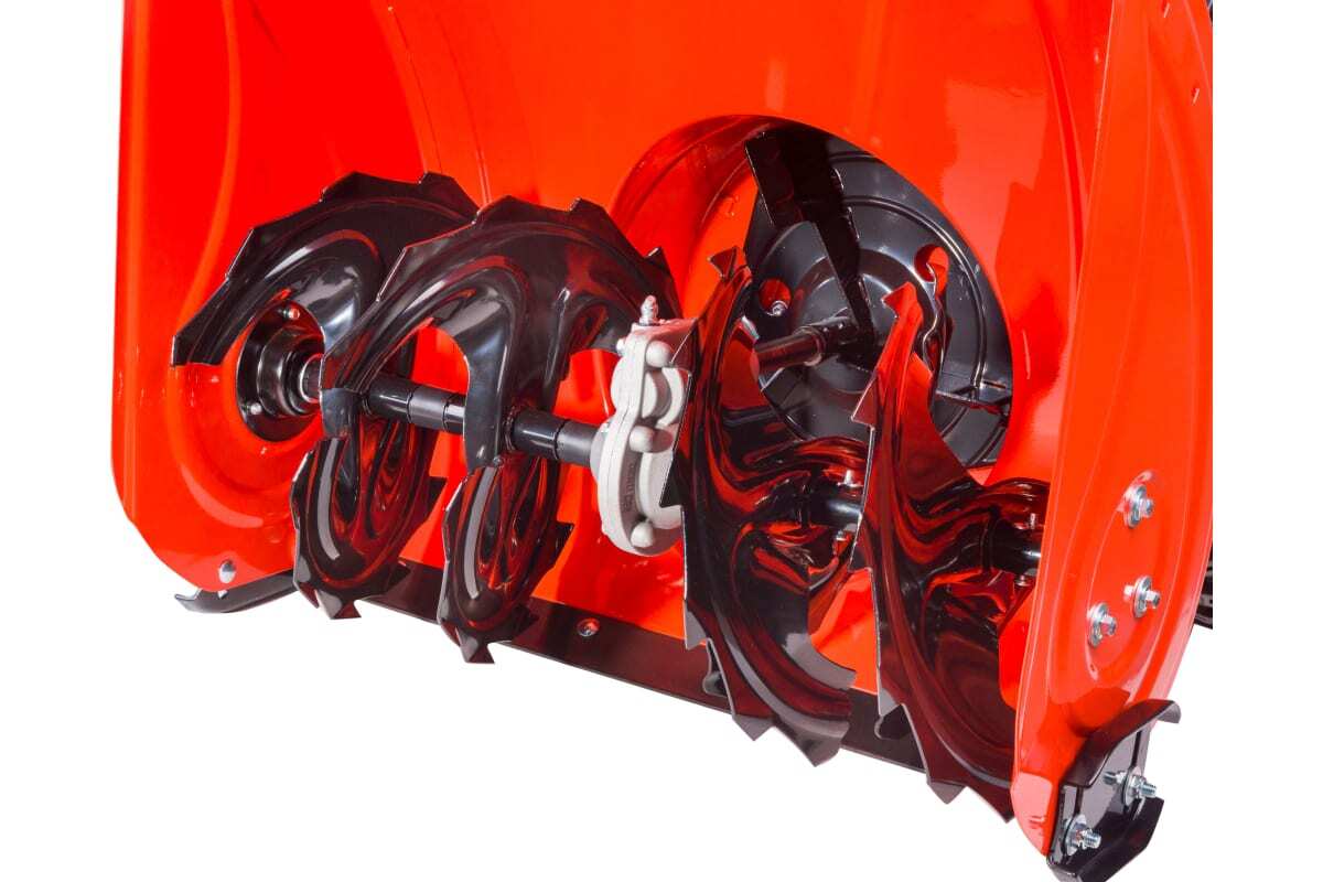 - ● стальные шнеки с зубцами измельчают плотный снег и лед;