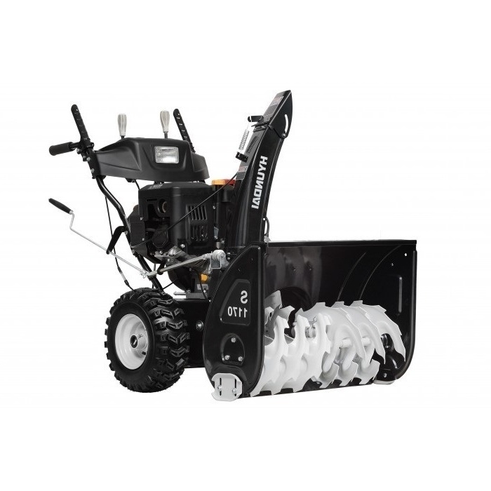 Эта модель снегоуборочной техники демонстрирует эффективность при работе с плотным и свежим снегом. Она также оснащена специальными рычагами на панели управления, которые позволяют регулировать высоту и направление выброса снега. Основные преимущества модели:
