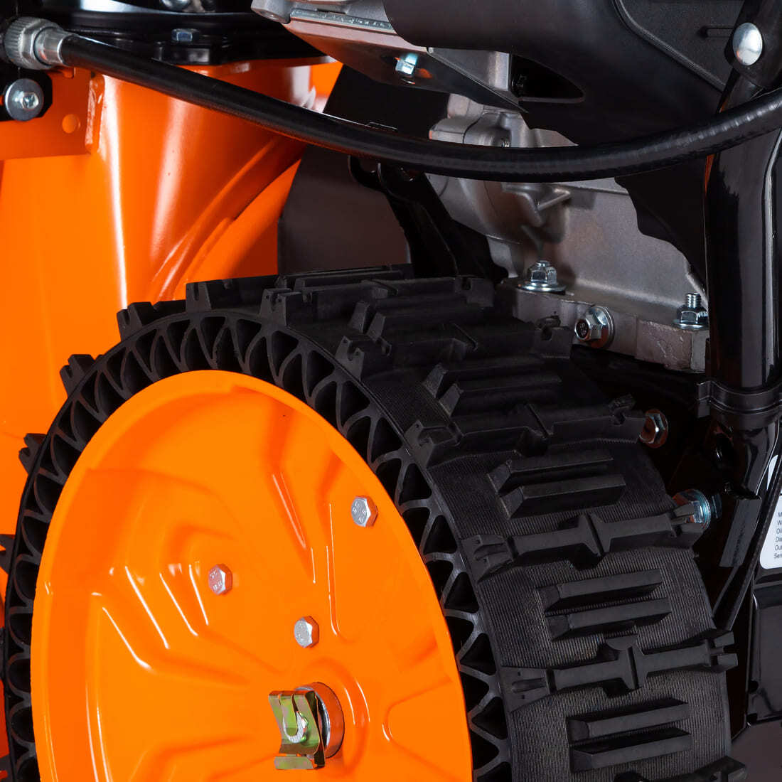 На Kettama 150S также установлены безвоздушные шины SnowLink с технологией Runflat. Эти шины с глубоким протектором исключают пробуксовку агрегата на обледенелом участке. Увеличенное сцепление даёт возможность достичь показателей производительности практически равных гусеничному шасси. При этом, более низкий общий вес снегоуборщика позволяет достигать на этой модели показателей производительности до 10-12 т/ч с влажным лежалым снегом плотностью до 550-600 кг/м3. На свежевыпавшем влажном снегу плотностью до 200-250 кг/м3 этот снегоуборщик имеет производительность до 20 т/ч. Шины Runflat позволяют достигать высокого сцепления и производительности даже во время поворотов. Удобство и эффективность управления на этой модели обеспечивается наличием дифференциальной системы.